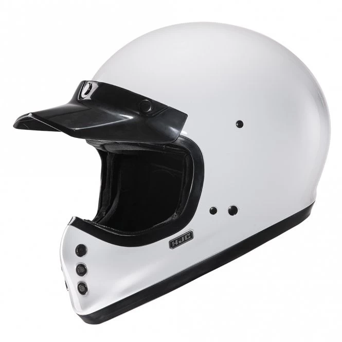 Classic styling with a modern twist, the HJC V60 adds a brand-new category of helmets to our off-road lineup for 2022. Inspired by the original FG-01 from the 1980s, the V60 goes beyond the vintage look with new-age features such as a lightweight fiberglass shell, a large inner IS-10 sun visor, built-in speaker pockets, removable and washable interior, and emergency release cheek pads for extra safety. The V60 also includes a removable 3-snap peak visor to complete the retro look.