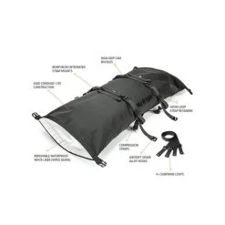 Hook onto OS-RACK LOOPS or OS-32 SOFT PANNIER for attaching roll-top bags, tents etc. The ‘Hook-back’ feature also allows you to mount one end around a bike frame or grab rail.
