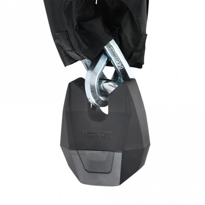 The Monster XL chain lock features a powerful 14.5mm chain made from high quality Ni-Cro-Mo alloy steel. The chain has a protective cloth sleeve to help prevent damage and make it easier to handle.